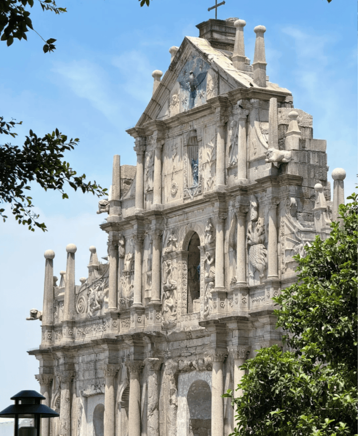 一早乘坐港珠澳大桥穿梭巴士(约60元/人=,1小时直达)▪,从香港前往澳门。首站打卡世界文化遗产——大三巴牌坊,了解圣保禄教堂的历史◁;接着登上炮台山,俯瞰澳门老城全貌…。随后参观金莲花广场,这是澳门回归的重要纪念地。下午前往妈祖庙▼,这座始建于明代的庙宇香火不断,是澳门最古老的庙宇之一。