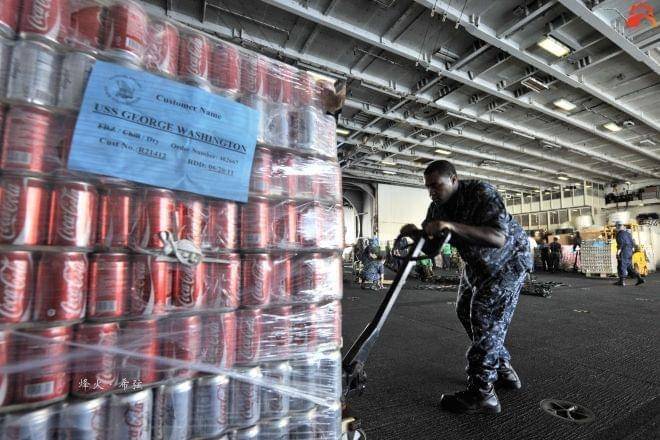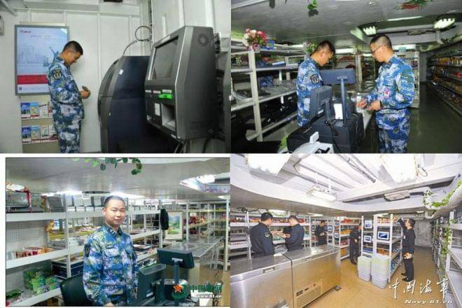 航母上几千人★,这个购买力也还是不小的,日常的超市商品补给配货的工作量也不小。